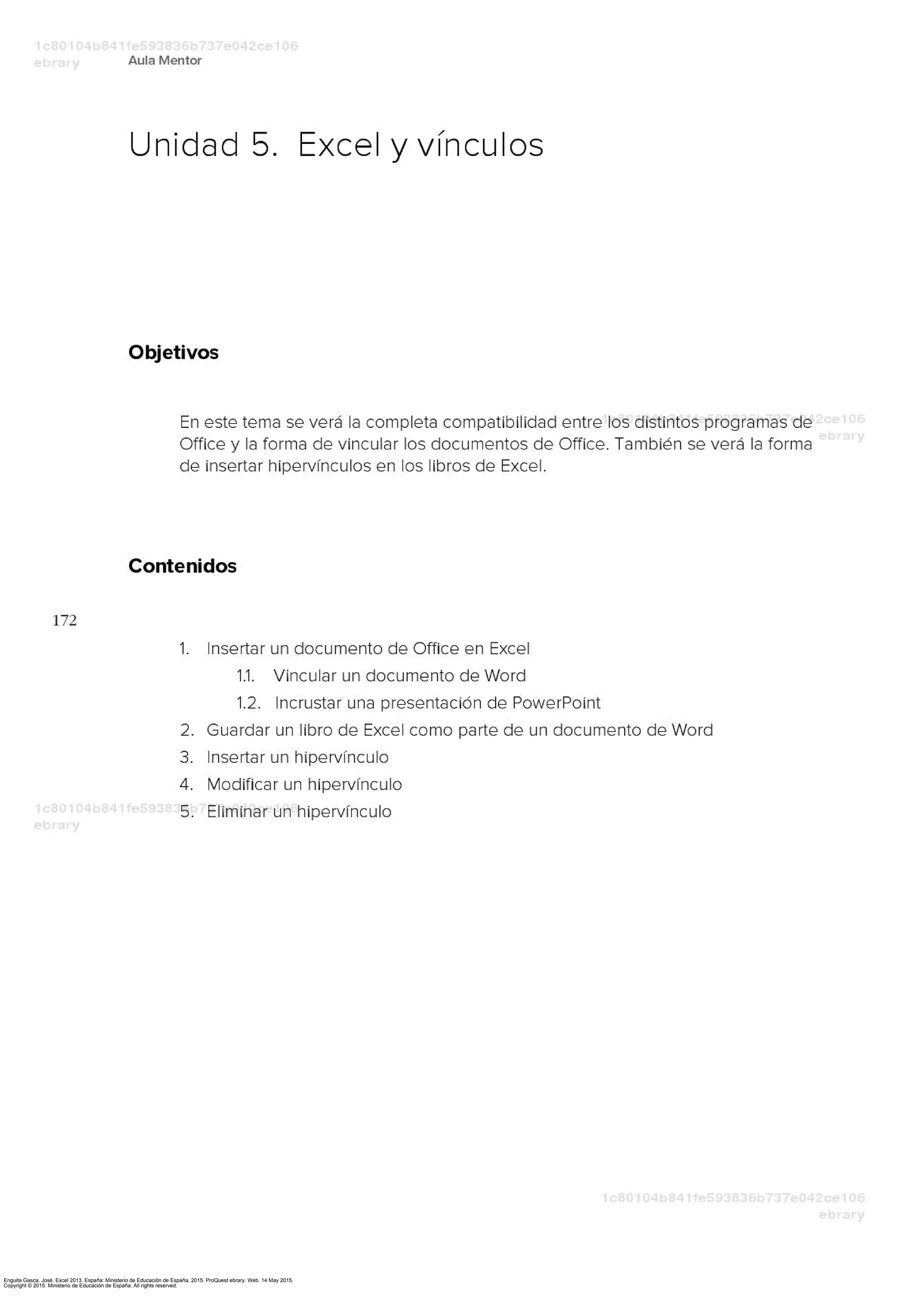 El documento detalla un libro escrito por José Enguita Gasca titulado "Excel 2013" publicado en España en 2015 por el Ministerio de Educación de España.