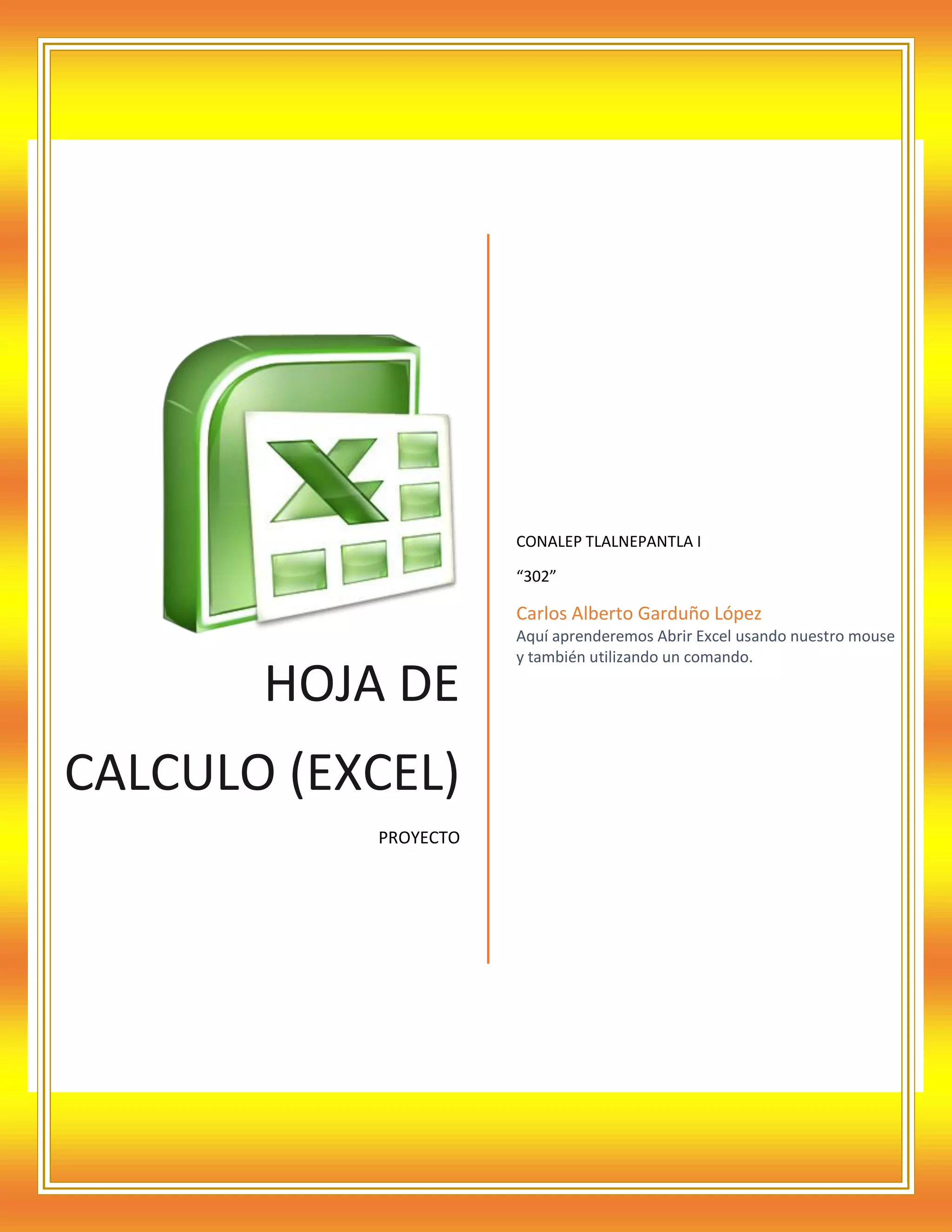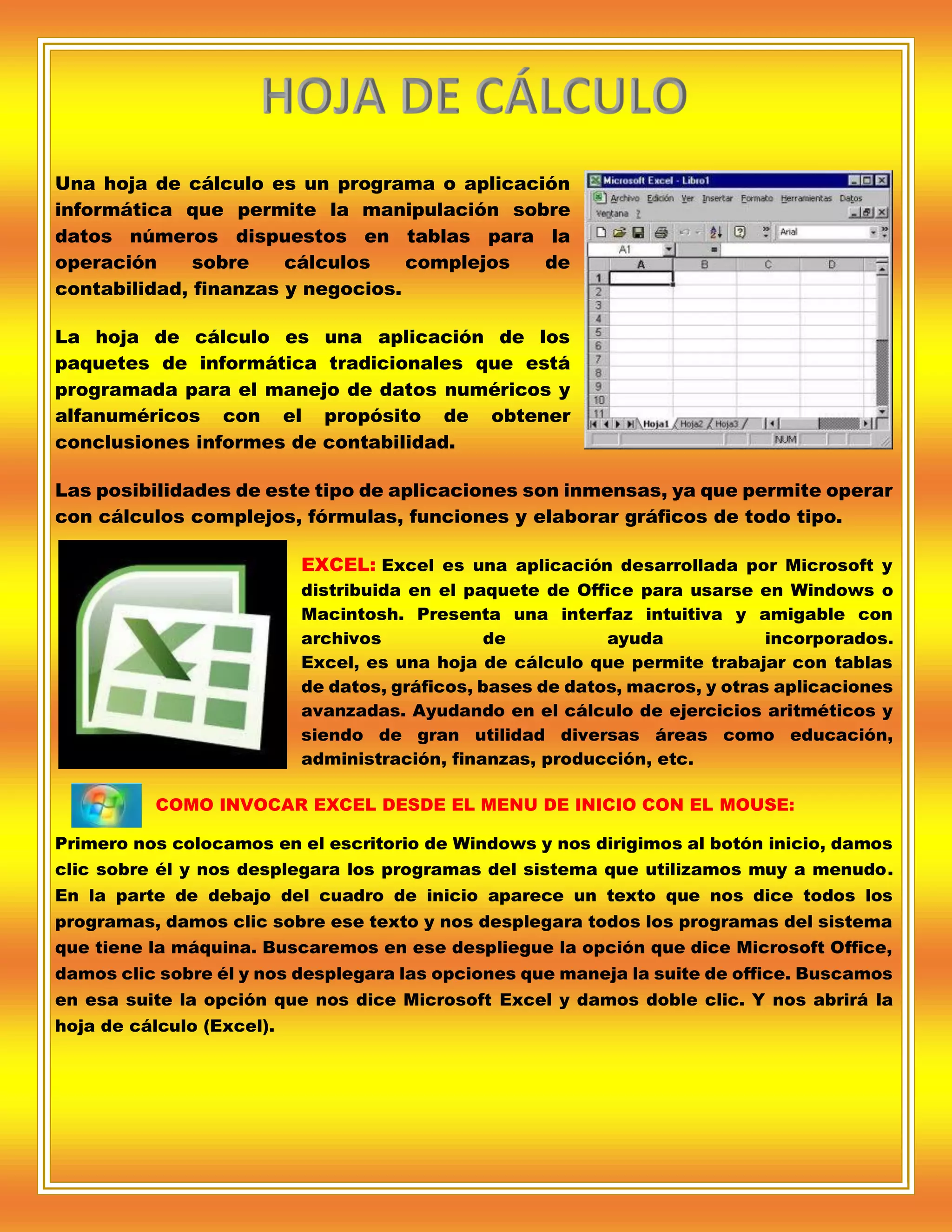 El documento describe cómo abrir Excel de dos maneras: usando el mouse desde el menú Inicio o mediante un comando. Explica las partes principales de Excel como la barra de menú, celdas, filas y columnas. Finalmente, proporciona instrucciones detalladas sobre cómo invocar Excel de cada forma.
