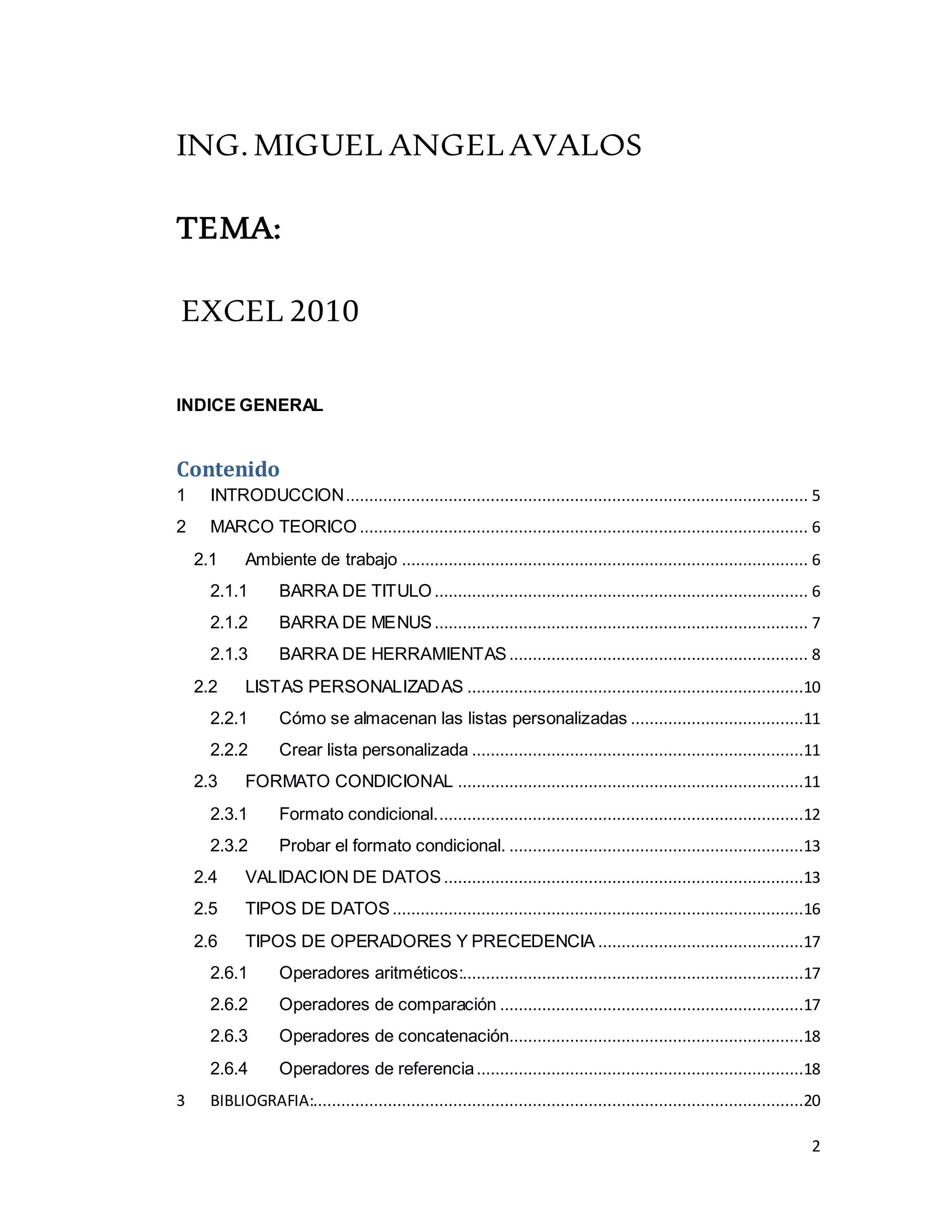 Este documento proporciona información sobre las funciones básicas de Excel 2010, incluyendo el ambiente de trabajo, listas personalizadas, formato condicional, validación de datos, tipos de datos y operadores. Explica elementos como la barra de título, menús, herramientas y cómo crear y almacenar listas personalizadas para ordenar y rellenar datos. También cubre temas como formato condicional, tipos de operadores y su precedencia.