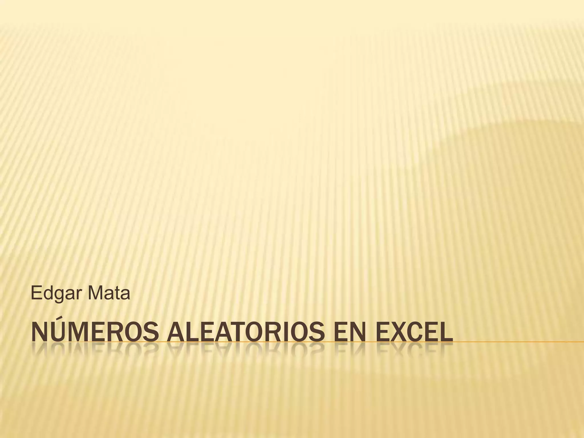 Este documento explica cómo generar números aleatorios en Excel en un rango determinado utilizando la función ALEATORIO() y cómo eliminar los decimales con la función REDONDEAR(). También indica que para copiar números aleatorios sin que cambien al modificar la hoja, se deben copiar y pegar los valores en lugar de las fórmulas.