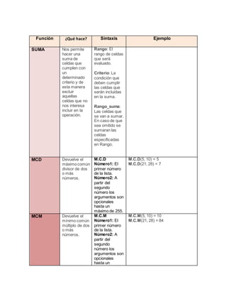 La función SUMAPRODUCTO en Excel permite sumar los productos de las celdas de dos o más matrices proporcionadas como argumentos. Si se pasa una sola matriz, la función solo suma los elementos de dicha matriz. La función es útil para entender claramente cómo opera con las matrices proporcionadas mediante ejemplos como sumar cada elemento de una matriz o multiplicar y luego sumar los productos de las celdas de dos matrices.