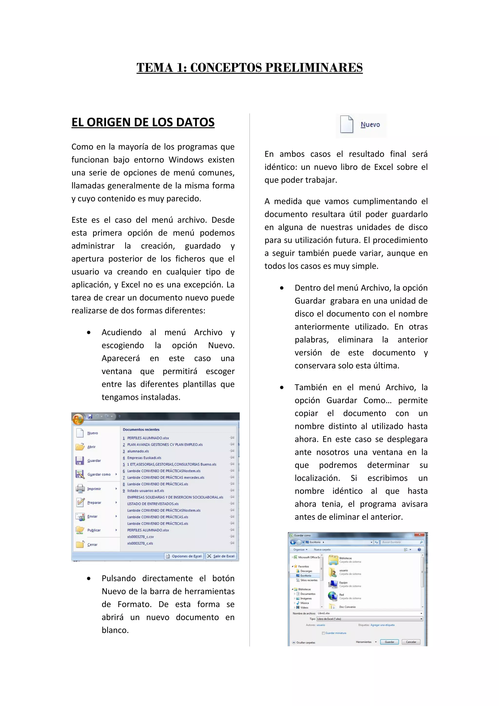 Este documento describe los conceptos básicos de Microsoft Excel, incluyendo cómo crear y guardar documentos, agregar y eliminar hojas, moverse por la hoja de cálculo, introducir datos como números, fechas y texto, y copiar datos o series. Explica cómo crear un nuevo libro de Excel, guardar y abrir documentos existentes, y cerrar el programa. También cubre cómo cambiar el nombre de las hojas, insertar y eliminar hojas, y moverse por la hoja usando las teclas de flecha o haciendo clic en las celdas.