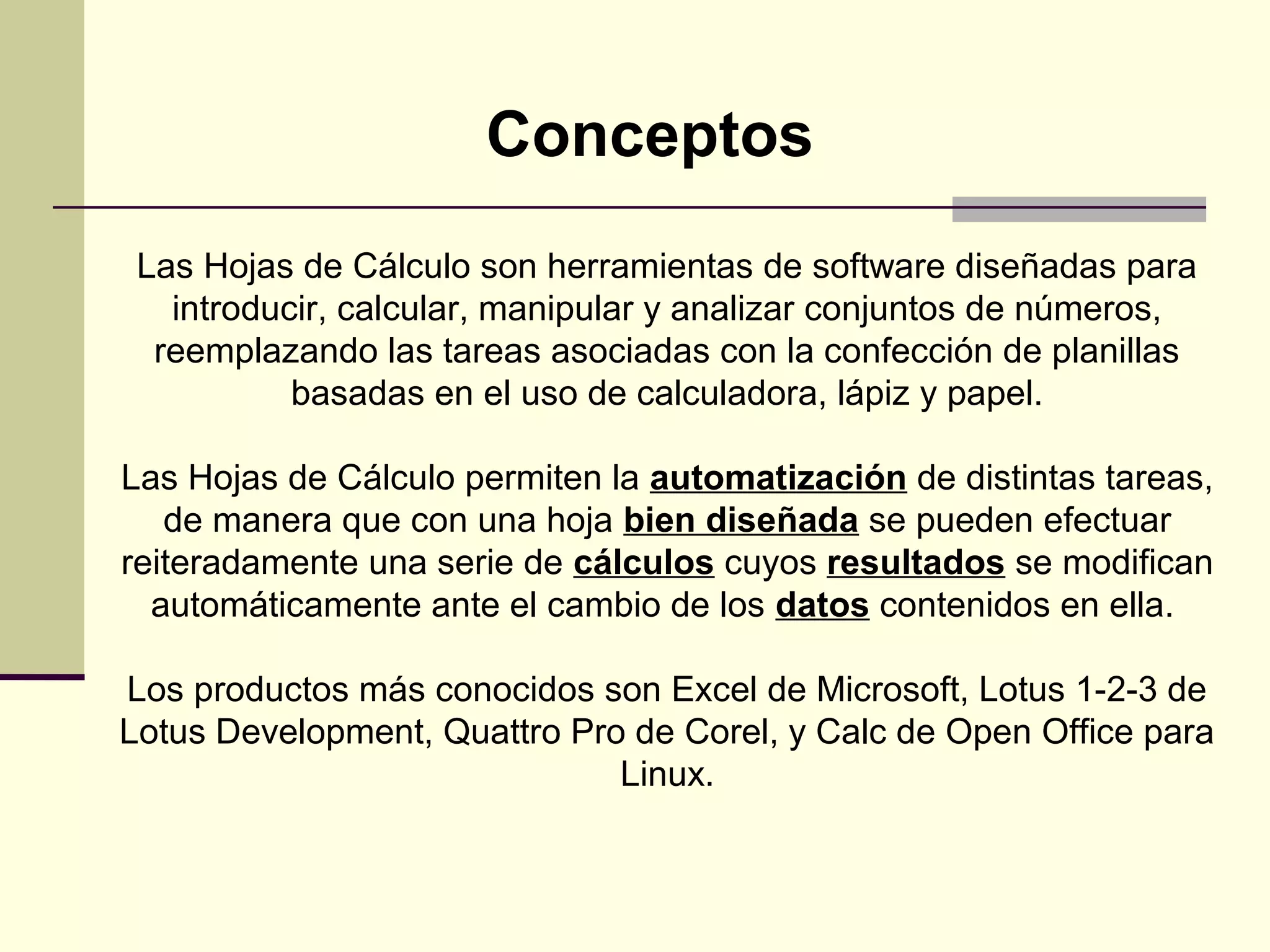 El documento habla sobre hojas de cálculo y Microsoft Excel. Explica que las hojas de cálculo permiten automatizar cálculos mediante fórmulas y que están compuestas por celdas organizadas en filas y columnas. También menciona algunas funciones básicas como sumar, graficar datos e insertar tablas y gráficos dinámicos.