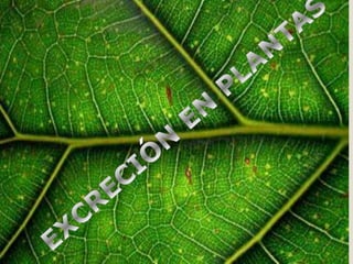 Las plantas no tienen un sistema excretor complejo y en su lugar excretan dióxido de carbono, oxígeno y otros desechos a través de la difusión y evaporación por sus estomas, lenticelas y raíces. Esto se debe a que las plantas no ingieren proteínas, no tienen músculos y forman pocos compuestos nitrogenados, los cuales son reutilizados o desechados a través de la difusión por los poros de las hojas.