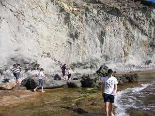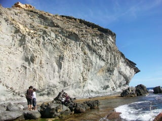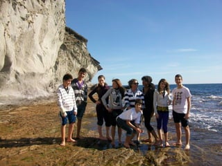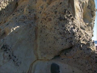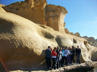 El documento describe una excursión educativa a las Calas de Terreros y Cocedores en Aguilas. La excursión incluye estudiar la formación de playas, recoger muestras de algas y conchas fósiles, y observar diferentes formaciones geológicas como esquisto, rocas volcánicas, y conglomerados. Los estudiantes también aprenden sobre la erosión, plantas marinas como la Posidonia oceánica, y la extracción de recursos.