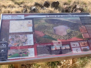 Este documento describe una excursión al volcán de la Posadilla. Calcula distancias entre ciudades y características geográficas usando un mapa. Describe el paisaje y vegetación a lo largo de la ruta, incluyendo huertos, árboles, piedras volcánicas y matorrales. Finalmente, llega al volcán de la Posadilla y la laguna después de caminar bajo el sol.