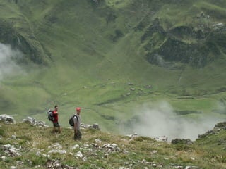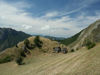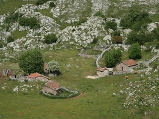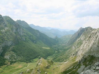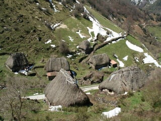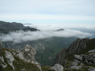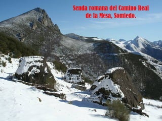 El documento lista varias rutas de montaña y lugares de interés en los Concejos de Asturias y la zona de Picos de Europa, incluyendo senderos, puertos de montaña, lagos, valles y picos como la Farrapona, Peña Rueda, Angliru y Naranjo de Bulnes. Finaliza mencionando el refugio de Aliva en el valle de Mieres.