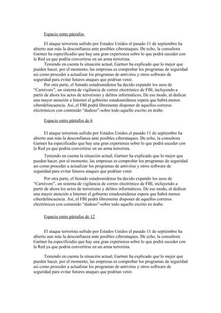 El ataque terrorista del 11 de septiembre aumentó los temores de ciberataques. Gartner advirtió que Internet podría usarse como arma terrorista y recomendó que las empresas actualicen sus sistemas de seguridad. El Senado estadounidense expandió los poderes del programa de vigilancia de correo electrónico "Carnivore" del FBI para incluir el terrorismo y los delitos informáticos, con la esperanza de reducir la ciberdelincuencia mediante una mayor vigilancia en Internet.