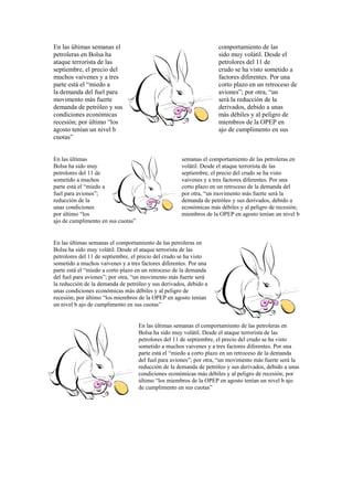 El comportamiento de las petroleras ha sido volátil en las últimas semanas debido a tres factores: el miedo a una caída temporal de la demanda de combustible para aviones, la reducción de la demanda de petróleo por las débiles condiciones económicas y el riesgo de recesión, y el bajo cumplimiento de las cuotas de producción por parte de los miembros de la OPEP en agosto.