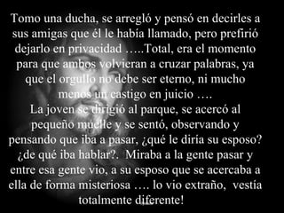 La joven recibe una llamada de su esposo fallecido, quien la cita en el parque junto al lago. Al llegar, él luce pálido y vestido de blanco, indicando que ha muerto. Le dice que la ama y que lamenta haberla lastimado, entregándole una cruz como símbolo de su amor eterno. Al regresar a la casa de los padres de él, la joven se entera de que murió de tristeza luego de su separación. En una carta, él le pide perdón por no haberla pod