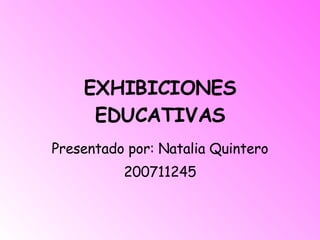 Este documento describe el modelo didáctico de las exposiciones educativas, las cuales permiten que los estudiantes adquieran conocimiento en espacios abiertos como museos o ferias observando objetos expuestos. El modelo requiere que el ambiente de aprendizaje esté bien estructurado y organice los objetos de manera que genere nuevo conocimiento. Las exposiciones educativas proponen tareas de aprendizaje que permiten a los estudiantes elegir sus propias metas, aunque a menudo son vistas solo como entretenimiento.