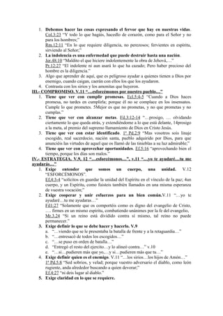 El documento discute cinco características necesarias para que una iglesia tenga éxito y crezca: 1) visión, 2) pasión, 3) compromiso, 4) unidad y estrategia conjunta, y 5) dependencia de Dios. Cada característica se ilustra con ejemplos bíblicos. El documento concluye exhortando a los lectores a desarrollar estas cinco características.