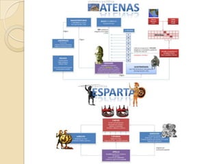 La geografía montañosa de Grecia contribuyó al aislamiento de las comunidades griegas, lo que llevó al desarrollo de múltiples ciudades-estado (polis) independientes como Atenas y Esparta. Estas polis desarrollaron diferentes formas de gobierno, desde democracias en Atenas hasta oligarquías en Esparta. La civilización griega también floreció en las artes, la filosofía, las ciencias y otras áreas, con figuras como Sócrates, Platón y Aristóteles sentando las bases del