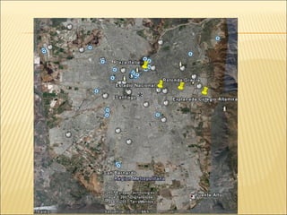 Este documento describe el crecimiento poblacional y expansión territorial de la ciudad de Santiago, Chile desde su fundación en 1541 hasta la actualidad. Inicialmente, Santiago tuvo una tasa de crecimiento alta de alrededor del 2.68% anual, pero esta disminuyó a menos del 2% hasta fines del siglo XIX. A partir de entonces, la tasa de crecimiento aumentó a aproximadamente el 3-4% anual, debido tanto al crecimiento natural como a la inmigración desde otras regiones. En las últimas décadas la tasa ha v