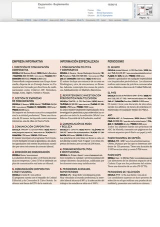 El documento detalla la difusión y características de un suplemento del diario Expansión en Madrid, con tres tiradas diferentes en publicaciones del 15 de junio de 2016. En total, se distribuyeron 40,632 ejemplares, con una difusión efectiva de 26,372. Cada página tiene un valor y área distintos, reflejando la ocupación de espacio publicitario.