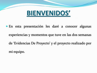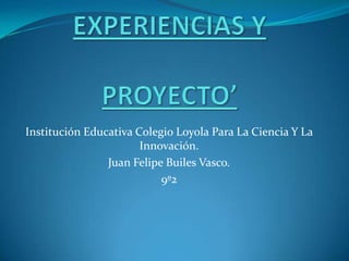 Este documento presenta el proyecto realizado por un equipo de estudiantes del Colegio Loyola sobre los niveles de violencia en los barrios donde residen los estudiantes y la posible influencia en su comportamiento. El equipo aplicó encuestas a 74 estudiantes para comprobar si la violencia en sus barrios afectaba sus conductas. Los resultados mostraron que la mayoría de los estudiantes no habían sufrido agresiones y que la violencia comunal no alteraba las conductas de la mayoría de los estudiantes.