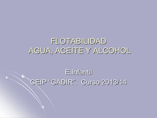 La flotabilidad es la capacidad de un objeto para flotar en el agua. Los objetos flotan cuando el agua que desplazan pesa lo mismo o menos que el objeto mismo. Los materiales como el aceite y el alcohol flotan en el agua porque son menos densos que ella.