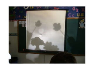 Los estudiantes de 5oB de una escuela en España prepararon una historia con sombras titulada "El árbol que tenía muchos amigos". Aunque fue difícil de realizar, los niños disfrutaron moviendo los dibujos y descubriendo cómo se proyectaban en la pantalla. La historia trata de un árbol y sus amigos -flores, mariposas y pájaros- que intentan evitar que un trabajador corte el árbol para construir un edificio.