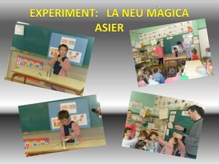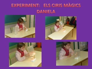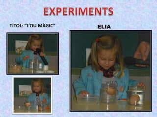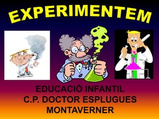 El documento presenta una serie de títulos y actividades relacionadas con la educación infantil en el contexto del C.P. Doctor Esplugues Montaverner, enfocándose en experimentos y observaciones científicas para niños. Se mencionan diversas temáticas como la magia, la luz, la sal, y fenómenos físicos como la flotación, presión atmosférica y fuerza magnética. Cada actividad es nombrada por diferentes autores, sugiriendo un enfoque colaborativo en la enseñanza.