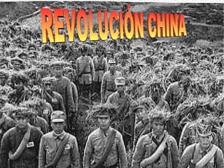 El documento describe la historia de China desde el fin de la dinastía Manchú en 1912 hasta la actualidad. Comenzó con la caída de la monarquía y el establecimiento de la República bajo el Kuomintang, seguido por una guerra civil entre nacionalistas y comunistas. Más tarde se unieron contra la invasión japonesa, pero la guerra civil continuó hasta 1949 cuando los comunistas ganaron y establecieron la República Popular de China bajo Mao Zedong.
