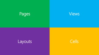 El documento describe las páginas, vistas y controles en Xamarin.Forms, incluyendo la clase abstracta Page y sus derivados como ContentPage y MasterDetailPage. También se explora cómo los controles visuales, como Button y Label, se construyen y se manejan a través de eventos en diferentes plataformas. Se menciona el uso de renderers para transformar views en controles específicos de cada sistema operativo.