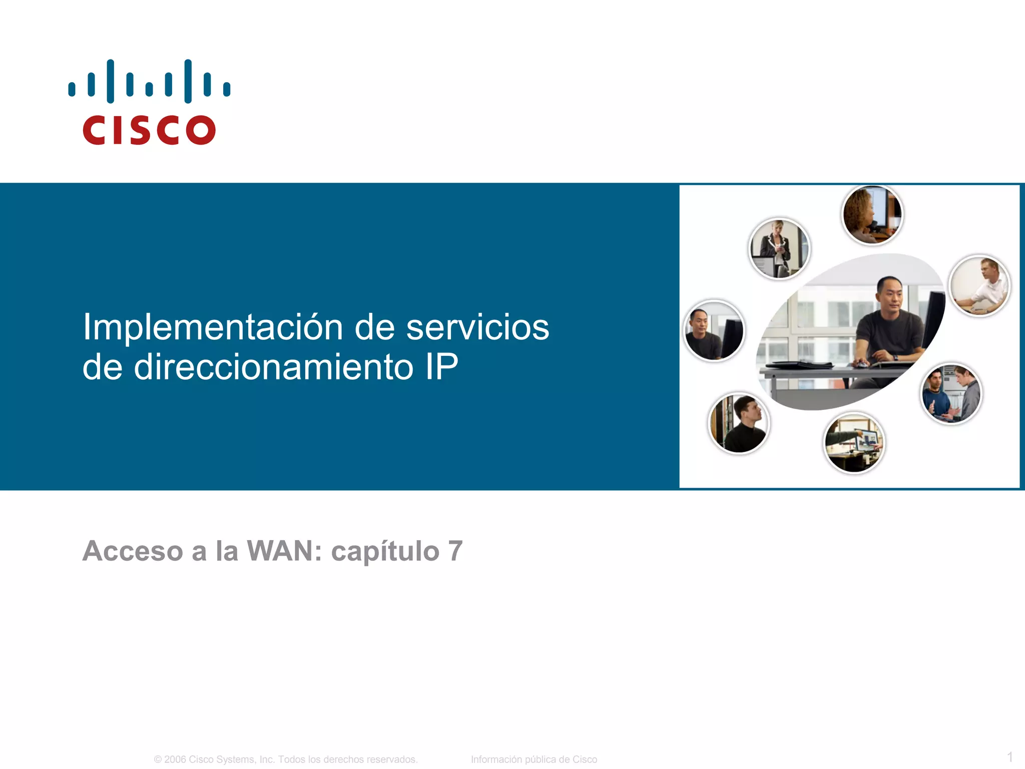 El documento describe los procedimientos para configurar servicios de direccionamiento IP como DHCP, NAT e IPv6 en routers Cisco. Explica cómo DHCP asigna dinámicamente direcciones IP a clientes, NAT traduce direcciones privadas a públicas, e IPv6 provee una solución al agotamiento de direcciones IP mediante una dirección de 128 bits.