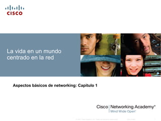 El documento describe cómo las redes afectan la vida diaria a través de la mensajería instantánea, los blogs y los podcasts. Explica los componentes clave de las redes de datos, como los dispositivos, el medio, los mensajes y las reglas. También cubre las características de la tolerancia a fallas, la escalabilidad, la calidad de servicio y la seguridad en las arquitecturas de red.