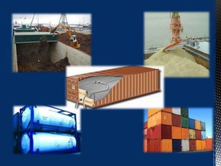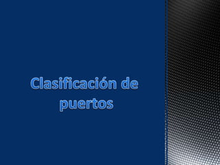 El documento describe los diferentes tipos de zonas y clasificaciones de puertos, incluyendo zonas de operación, almacenamiento, vías de comunicación y zonas complementarias. También explica los diferentes tipos de pavimentos utilizados en cada zona portuaria y los pasos para su diseño y construcción, así como las consideraciones de seguridad.