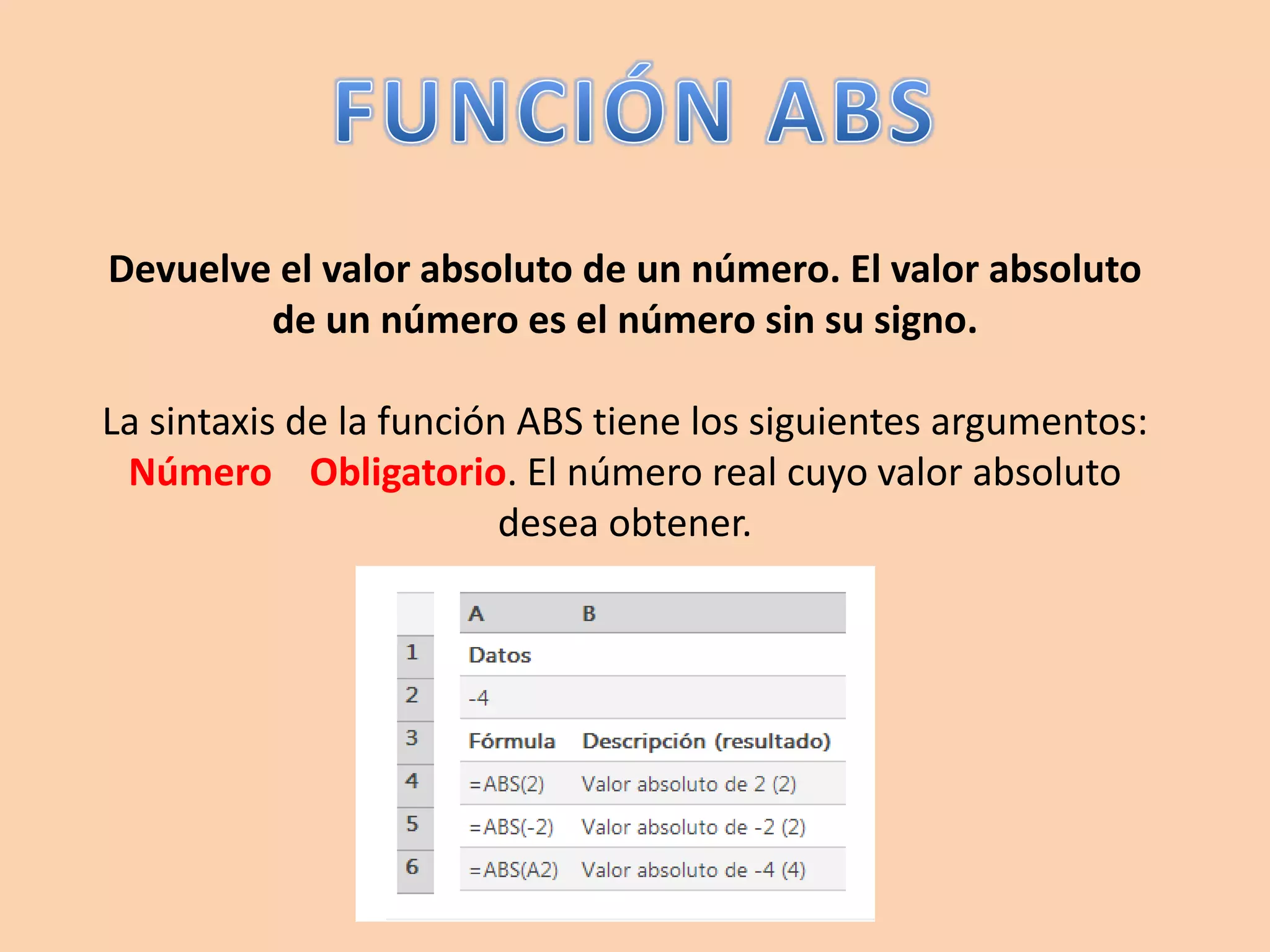 Este documento describe varias funciones matemáticas en Excel, incluyendo ABS, ALEATORIO.ENTRE, COCIENTE, COMBINAT, ENTERO, EXP, FACT, GRADOS, LN, PRODUCTO, RAÍZ, RADIANES, REDONDEAR y TRUNCAR. Cada función se define brevemente con su sintaxis y uso.