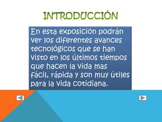 Este documento resume seis avances tecnológicos recientes que están transformando la vida cotidiana: 1) El crecimiento del buscador Bing de Microsoft y su competencia con Google, 2) La sustitución de la televisión, radio y prensa por Internet, 3) La fusión entre teléfonos móviles y ordenadores, 4) Los entornos virtuales realistas en videojuegos, 5) Las interfaces táctiles y virtuales, y 6) La computación en la nube. En general, la tecnología está haciendo la vida más fácil