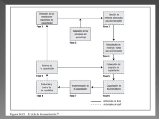 Este documento describe los conceptos básicos de la capacitación y su ciclo. Explica que la capacitación incluye la transmisión de información, el desarrollo de habilidades, el cambio de actitudes y el desarrollo de conceptos. También describe los objetivos de la capacitación, las necesidades de capacitación, los indicadores para determinar esas necesidades, y los pasos para diagnosticar, planear, implementar y evaluar un programa de capacitación.