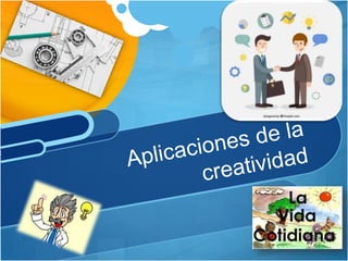 El documento define la creatividad como la facultad para crear utilizando procedimientos distintos a los tradicionales y cumpliendo deseos personales. Explora los beneficios de ser creativo como resolver problemas de manera efectiva y destacarse. También examina la historia de la creatividad desde la era primitiva hasta el siglo XX e identifica enemigos de la creatividad como la zona de confort. Finalmente, ofrece varias definiciones de creatividad que enfatizan su capacidad para producir cosas nuevas y valiosas.