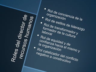 Este documento describe la importancia creciente del área de recursos humanos en las empresas y sus funciones clave. Explica que la visión del director sobre el cambio tecnológico determina el nivel de importancia de recursos humanos. Antes era responsabilidad de un jefe de personal, pero ahora es una dirección estratégica. También destaca la importancia de los valores del director de recursos humanos y concluye explicando las principales herramientas y técnicas del área como la valuación de puestos, reclutamiento, evaluación del desempe