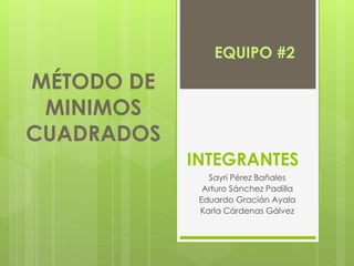El documento presenta el método de mínimos cuadrados y su aplicación para analizar series de tiempo. El método intenta encontrar la función que mejor se ajusta a un conjunto de datos minimizando la suma de los cuadrados de los residuos. Se describe cómo se puede usar para identificar la tendencia secular de una serie y predecir valores futuros mediante la ecuación de la recta de tendencia. Como ejemplo, se muestra cómo predecir las ventas futuras de una zapatería en 2015 usando sus ventas históricas.