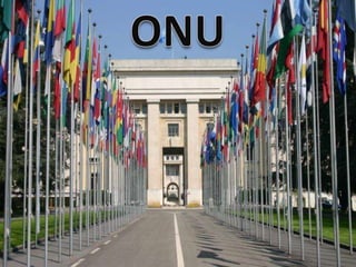 La ONU fue creada en 1945 tras la Segunda Guerra Mundial para reemplazar a la Liga de Naciones. Su objetivo es mantener la paz y la seguridad internacionales, y promover la cooperación entre las naciones. La ONU tiene seis órganos principales: la Asamblea General, el Consejo de Seguridad, el Consejo Económico y Social, el Consejo de Administración Fiduciaria, la Secretaría General y la Corte Internacional de Justicia.