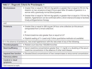 Este documento presenta información sobre la enfermedad hipertensiva del embarazo, específicamente la preeclampsia. Explica que la preeclampsia es la segunda causa de muerte materna en Perú y causa principal de retraso de crecimiento intrauterino. Describe las posibles causas como factores genéticos, problemas de placentación e inmunológicos, y explica la fisiopatología que involucra daño endotelial. También cubre el diagnóstico, complicaciones y tratamiento de la preeclampsia leve y