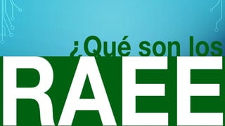 Este documento describe los residuos de aparatos eléctricos y electrónicos (RAEEs), incluyendo que contienen componentes peligrosos como metales pesados y plásticos bromados. Explica que los RAEEs se dividen en línea blanca, marrón y gris. También proporciona detalles sobre la recolección de RAEEs los fines de semana en centros comerciales de Cali.