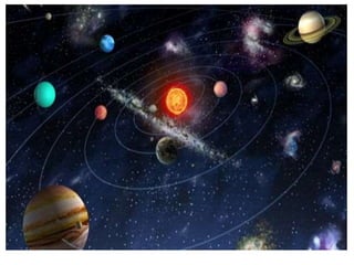 Este documento presenta una revisión de las teorías sobre el origen del universo, incluyendo el creacionismo, la teoría del Big Bang, la teoría inflacionaria y la teoría del universo oscilante. Se concluye que la teoría más respaldada es la del Big Bang, en la que el universo tuvo un comienzo a partir de una gran explosión que lanzó partículas en todas direcciones formando los elementos cósmicos actuales.