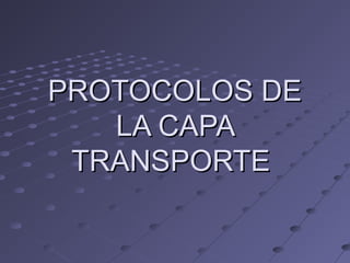 La capa de transporte permite la segmentación y reensamble de datos a través de streams de comunicación entre hosts origen y destino. Los protocolos más comunes son TCP, que provee entrega confiable y ordenada de datos, y UDP, que es más simple y usa menos recursos. RTP transmite datos de tiempo real como audio y video sobre IP manteniendo el orden y marcadores temporales.