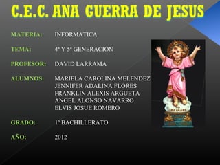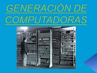 El documento resume las cuatro y quinta generaciones de computadoras. La cuarta generación se caracterizó por la integración de circuitos en chips y el desarrollo del microprocesador, lo que permitió la creación de las primeras computadoras personales. La quinta generación se enfocó en la inteligencia artificial y los sistemas expertos.