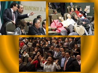 José López Portillo fue presidente de México de 1976 a 1982. Provenía de una familia de intelectuales y estudió derecho en la UNAM. Ocupó varios cargos públicos antes de ser secretario de Hacienda y luego presidente. Su gobierno se benefició inicialmente del auge petrolero, pero tomó préstamos excesivos y el gasto público se descontroló, lo que llevó a una crisis económica severa cuando los precios del petróleo cayeron. Las medidas desesperadas como la nacionalización bancaria no