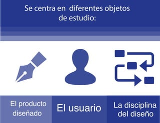 El documento describe las etapas de investigación de diseño, incluyendo el análisis de las características y propiedades del objeto diseñado, la evaluación de su usabilidad, durabilidad e impacto en el mercado considerando al usuario. También analiza el conocimiento sobre diseño en términos de impacto social y económico. Las etapas incluyen identificar el objetivo del proyecto, medir factores influyentes, desarrollar un modelo teórico y evaluar su contribución al éxito del proyecto.