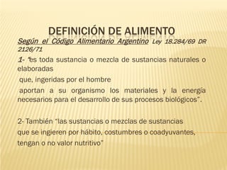 El documento define los alimentos gourmet como productos de alta calidad, distinción y producción artesanal o con pocos agregados químicos. Destaca que Argentina tiene buenas condiciones para producirlos y los exporta principalmente a Estados Unidos, Rusia, Chile y Brasil. También explica trámites como sellos de calidad y certificaciones internacionales requeridas para exportar alimentos gourmet.