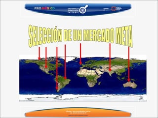 Este documento describe los factores a considerar para seleccionar un mercado meta para la exportación de productos, incluyendo el análisis PEST. Explica que el análisis PEST evalúa factores políticos, económicos, socioculturales y tecnológicos de cada país. También destaca la importancia de considerar el tamaño y composición de la población de cada mercado, así como aspectos demográficos, para identificar oportunidades de mercado.