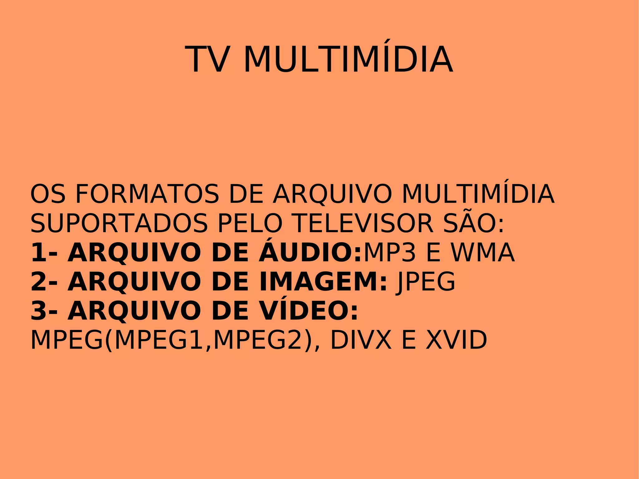 El documento describe los formatos de archivo multimedia compatibles con un televisor, como MP3, WMA, JPEG, MPEG, DivX y Xvid. Luego explica los pasos para exportar diapositivas a un formato JPG y copiarlas a un pendrive para verlas en el televisor multimedia. Finalmente, indica cómo insertar el pendrive en el televisor y navegar entre las imágenes usando los botones.