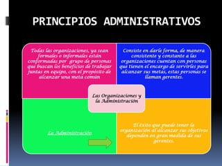 La administración consiste en dar forma a las organizaciones para alcanzar metas comunes a través de gerentes. El éxito de una organización depende de sus gerentes. La administración se puede considerar una ciencia que estudia cómo funcionan y evolucionan las empresas para lograr resultados de manera eficiente mediante la coordinación de recursos y la colaboración de personas.