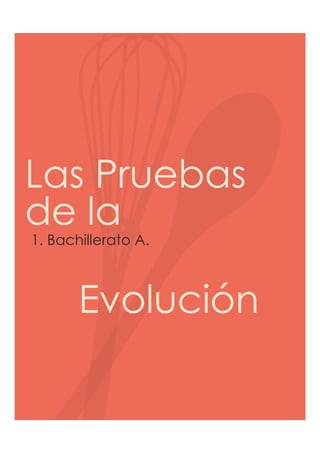 Este documento resume las siete pruebas principales de la evolución: 1) la paleontología, que muestra la evolución de especies a través del tiempo en los fósiles; 2) la bioquímica comparada, que demuestra relaciones evolutivas a través de similitudes moleculares; 3) la anatomía comparada, que revela homologías y analogías entre especies; 4) la domesticación, que ilustra cambios evolutivos inducidos por humanos; 5) la distribución geográfica, que refleja barreras a la dispersión de especies