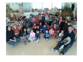 El documento describe un proyecto sobre cuentos de hadas realizado por estudiantes de educación infantil. Los estudiantes organizaron una exposición con información e ítems que trajeron de casa sobre lobos, brujas y ogros. Los maestros sorprendieron a los estudiantes inaugurando la exposición. Todos disfrutaron de la exposición y se sorprendieron cuando los personajes cobraron vida, queriendo estar todos juntos, concluyendo el proyecto exitosamente.