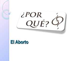 El documento proporciona información sobre los diferentes tipos de aborto, incluyendo aborto espontáneo, provocado y terapéutico. También describe los métodos para realizar abortos y las posibles complicaciones físicas y psicológicas.