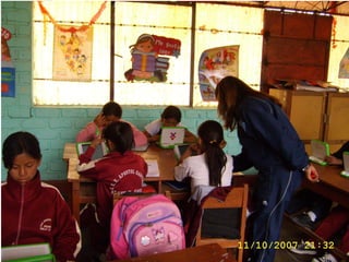 Este documento presenta los resultados de una prueba de usabilidad del software SUGAR en dos tipos de laptops, Classmate de Intel y OLPC, destinadas a niños. El estudio midió el grado de aceptación de SUGAR en las laptops y buscó generar recomendaciones para el uso de contenidos educativos. Se realizaron pruebas piloto con 12 niños utilizando tareas programadas en SUGAR y se observaron cualitativamente las interacciones. Los resultados sugieren que la versión de SUGAR en Classmate no se adapta tan